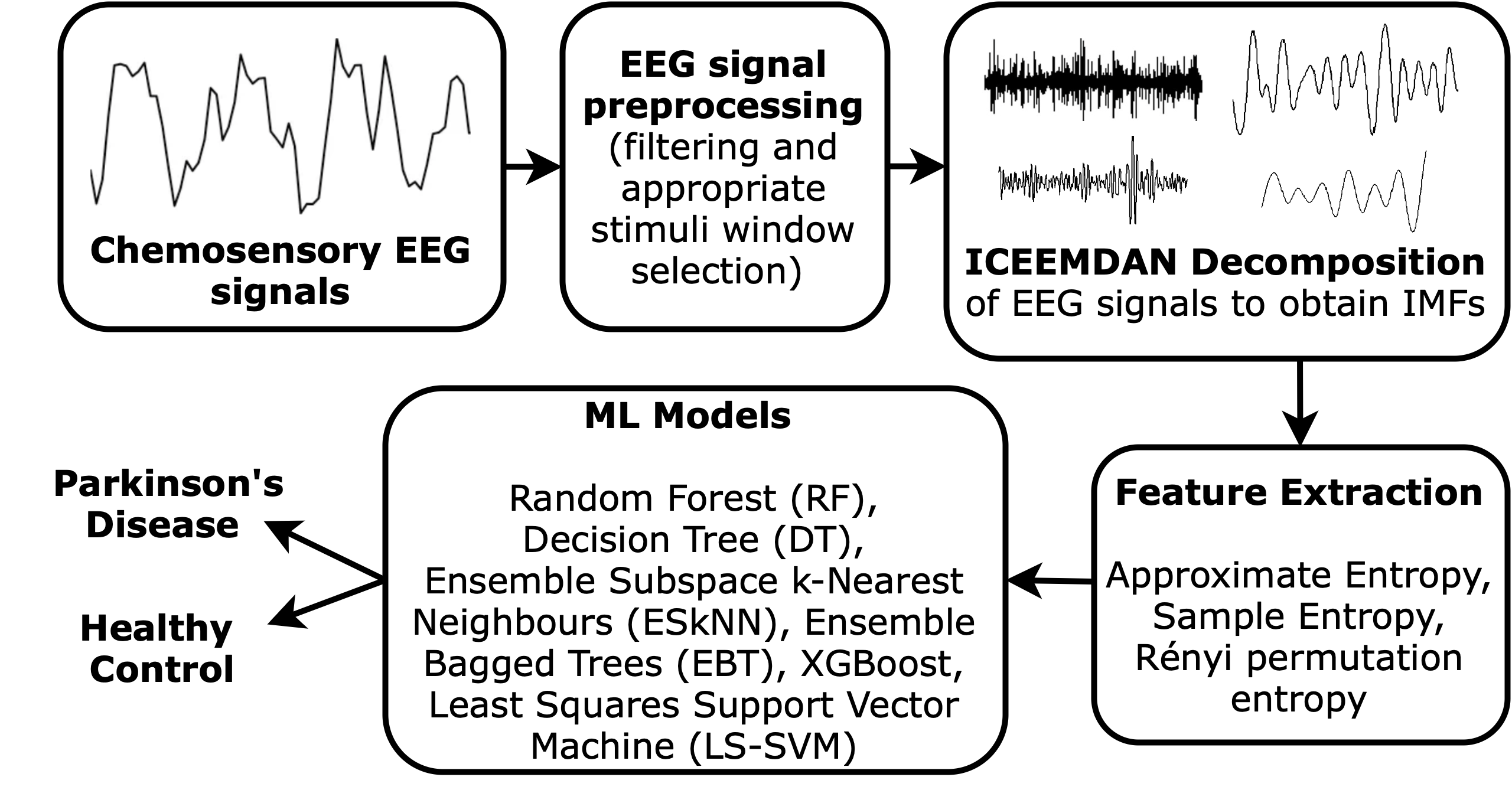 Identification of patients with de novo Parkinson's Disease from chemosensory EEG signals using ICEEMDAN domain Entropy Features